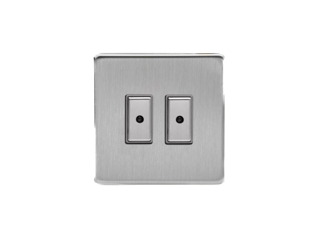 Tlaèítkový vypínaè IMPULSE - 2-modulový jednosmìrný (è.1) 0-100 W (max 10 LEDs) 0.7A 1-pólový LED s dálkovým V-Pro BEZROUBKOVÉ - kartáèovaná ocel / ocelová tlaèítka