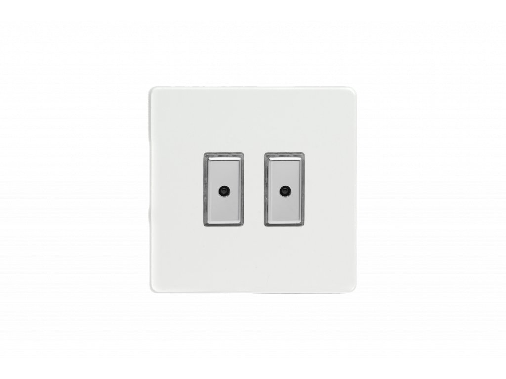 Tlaèítkový vypínaè IMPULSE - 2-modulový jednosmìrný (è.1) 0-100 W (max 10 LEDs) 0.7A 1-pólový LED s dálkovým V-Pro BEZROUBKOVÉ - prémiová bílá / chromová tlaèítka