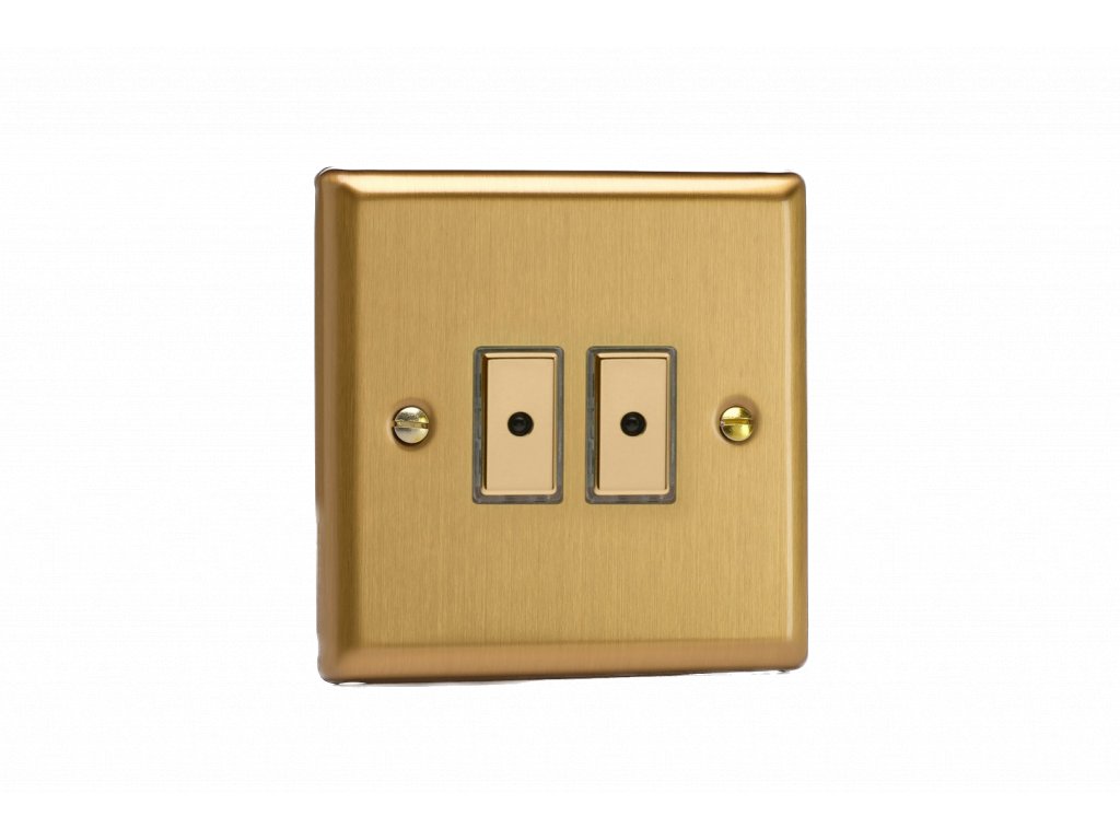 Tlačítkový vypínač IMPULSE - 2-modulový jednosměrný (č.1) 0-100 W (max 10 LEDs) 0.7A 1-pólový LED s dálkovým V-Pro KLASICKÉ - kartáčovaná mosaz / mosazná tlačítka