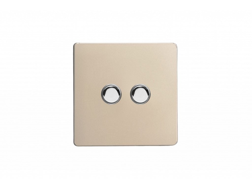 Tlačítkový vypínač IMPULSE - 2-modulový jednosměrný (č.1) 6A 1-pólový momentový BEZŠROUBKOVÉ - satén / chromová tlačítka