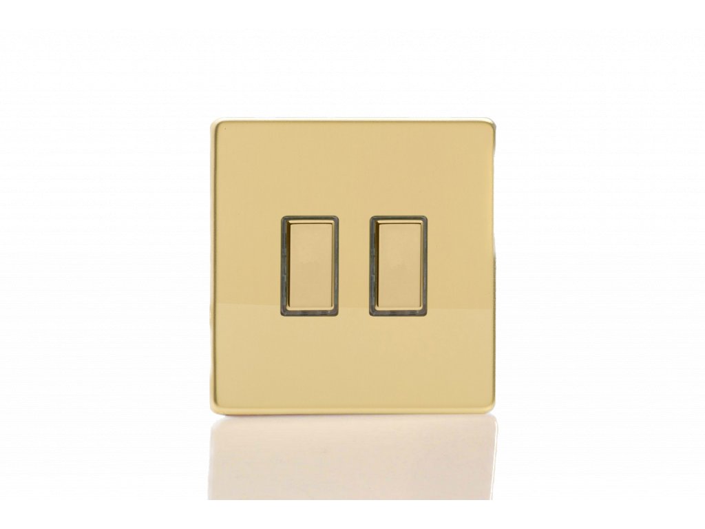 Tlačítkový vypínač IMPULSE - 2-modulový schodišťový (č.6) 1-pólový BEZŠROUBKOVÉ - leštěná mosaz / mosazná tlačítka