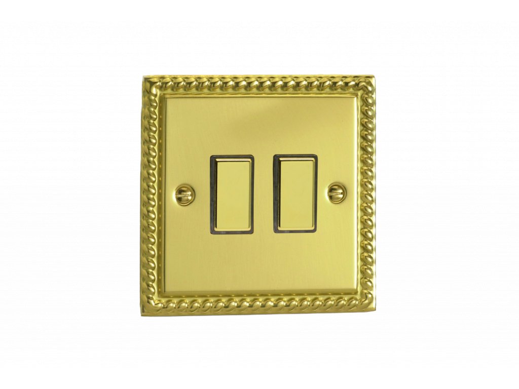 Tlačítkový vypínač IMPULSE - 2-modulový schodišťový (č.6) 1-pólový KLASICKÉ - leštěná mosaz / mosazná tlačítka