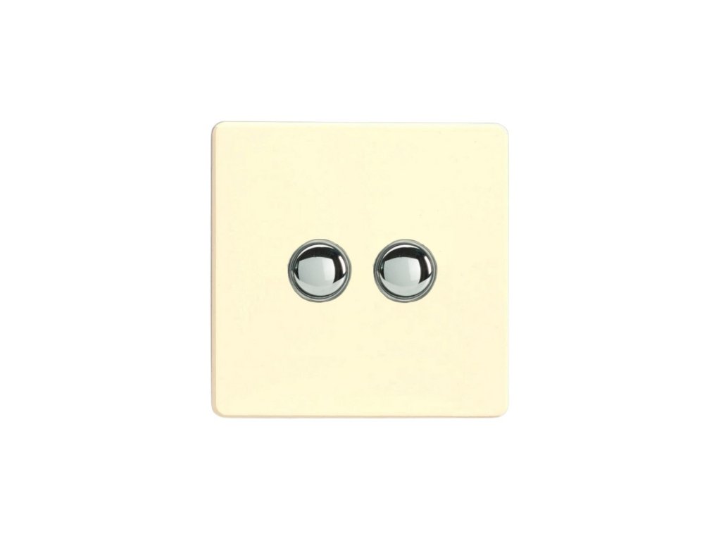 Tlaèítkový vypínaè IMPULSE - 2-modulový schodiový (è.6); jednosmìrný (è.1) 6A 1-pólový BEZROUBKOVÉ - bílá èokoláda / chromová tlaèítka