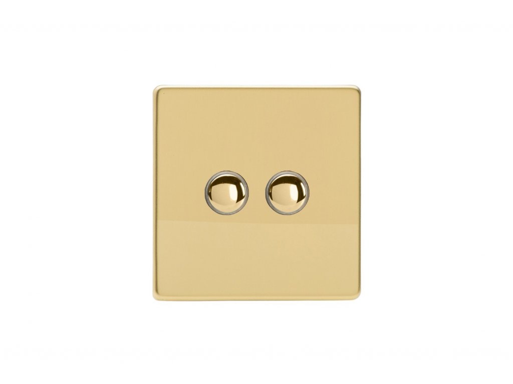 Tlačítkový vypínač IMPULSE - 2-modulový schodišťový (č.6); jednosměrný (č.1) 6A 1-pólový BEZŠROUBKOVÉ - leštěná mosaz / mosazná tlačítka