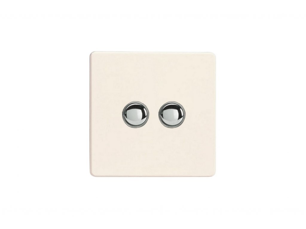 Tlačítkový vypínač IMPULSE - 2-modulový schodišťový (č.6); jednosměrný (č.1) 6A 1-pólový BEZŠROUBKOVÉ - matně bílá / chrom tlačítko