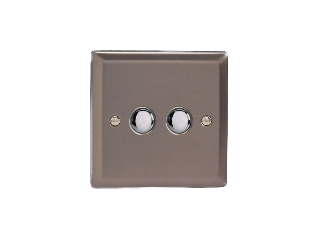 Tlačítkový vypínač IMPULSE - 2-modulový schodišťový (č.6); jednosměrný (č.1) 6A 1-pólový KLASICKÉ - cínová / chromová tlačítka