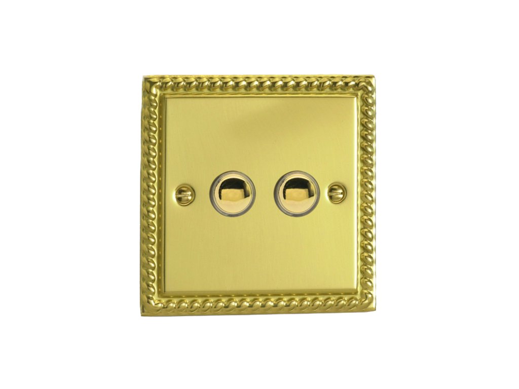 Tlačítkový vypínač IMPULSE - 2-modulový schodišťový (č.6); jednosměrný (č.1) 6A 1-pólový KLASICKÉ - leštěná mosaz / mosazná tlačítka