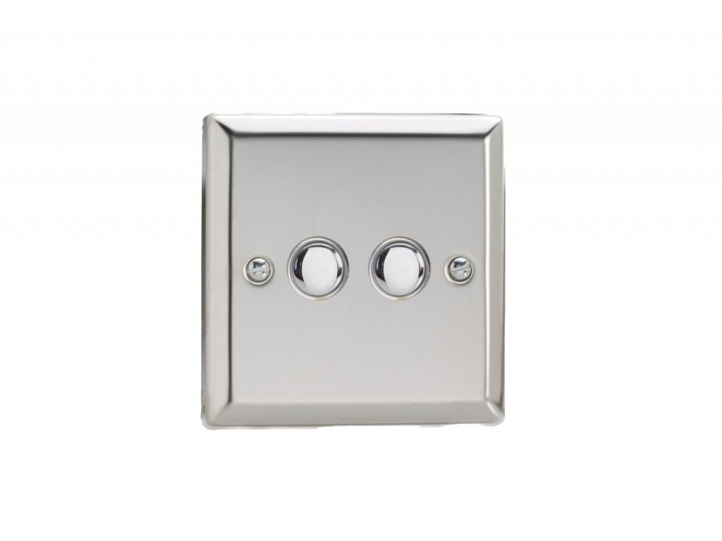 Tlačítkový vypínač IMPULSE - 2-modulový schodišťový (č.6); jednosměrný (č.1) 6A 1-pólový KLASICKÉ - leštěný chrom / chromová tlačítka