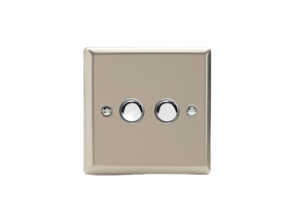 Tlačítkový vypínač IMPULSE - 2-modulový schodišťový (č.6); jednosměrný (č.1) 6A 1-pólový KLASICKÉ - satén / chromová tlačítka