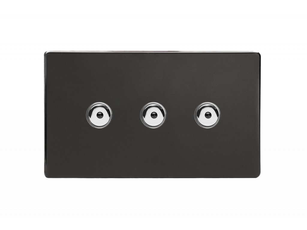 Tlaèítkový vypínaè IMPULSE - 3-modulový jednosmìrný (è.1) 0-100 W (max 10 LEDs) 0.9A 1-pólový LED s dálkovým BEZROUBKOVÉ - prémiová èerná / chromová tlaèítka