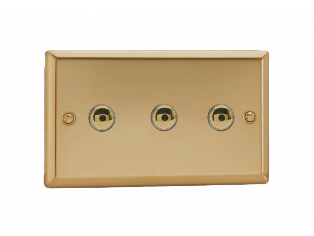 Tlaèítkový vypínaè IMPULSE - 3-modulový jednosmìrný (è.1) 0-100 W (max 10 LEDs) 0.9A 1-pólový LED s dálkovým KLASICKÉ - letìná mosaz / mosazná tlaèítka