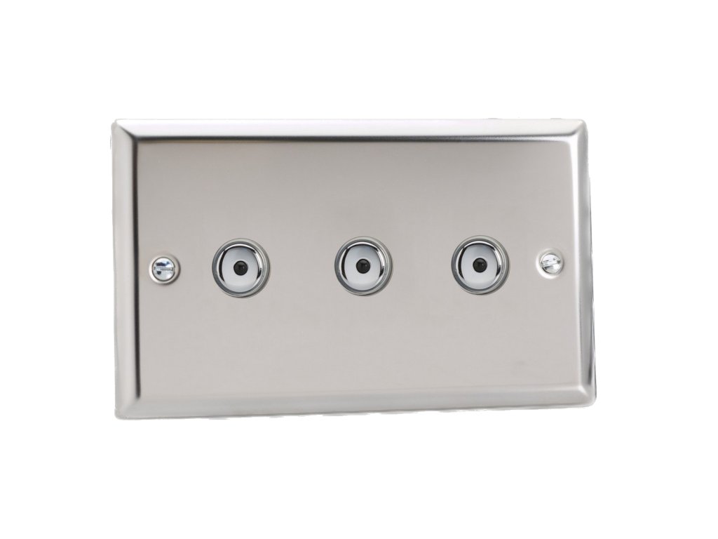Tlačítkový vypínač IMPULSE - 3-modulový jednosměrný (č.1) 0-100 W (max 10 LEDs) 0.9A 1-pólový LED s dálkovým KLASICKÉ - leštěný chrom / chromová tlačítka