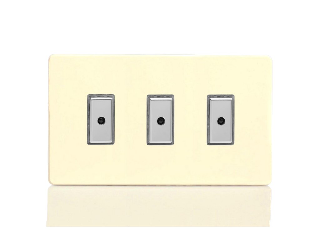 Tlačítkový vypínač IMPULSE - 3-modulový jednosměrný (č.1) 0-100 W (max 10 LEDs) 1.1A 1-pólový LED s dálkovým V-Pro BEZŠROUBKOVÉ - bílá čokoláda / chromová tlačítka