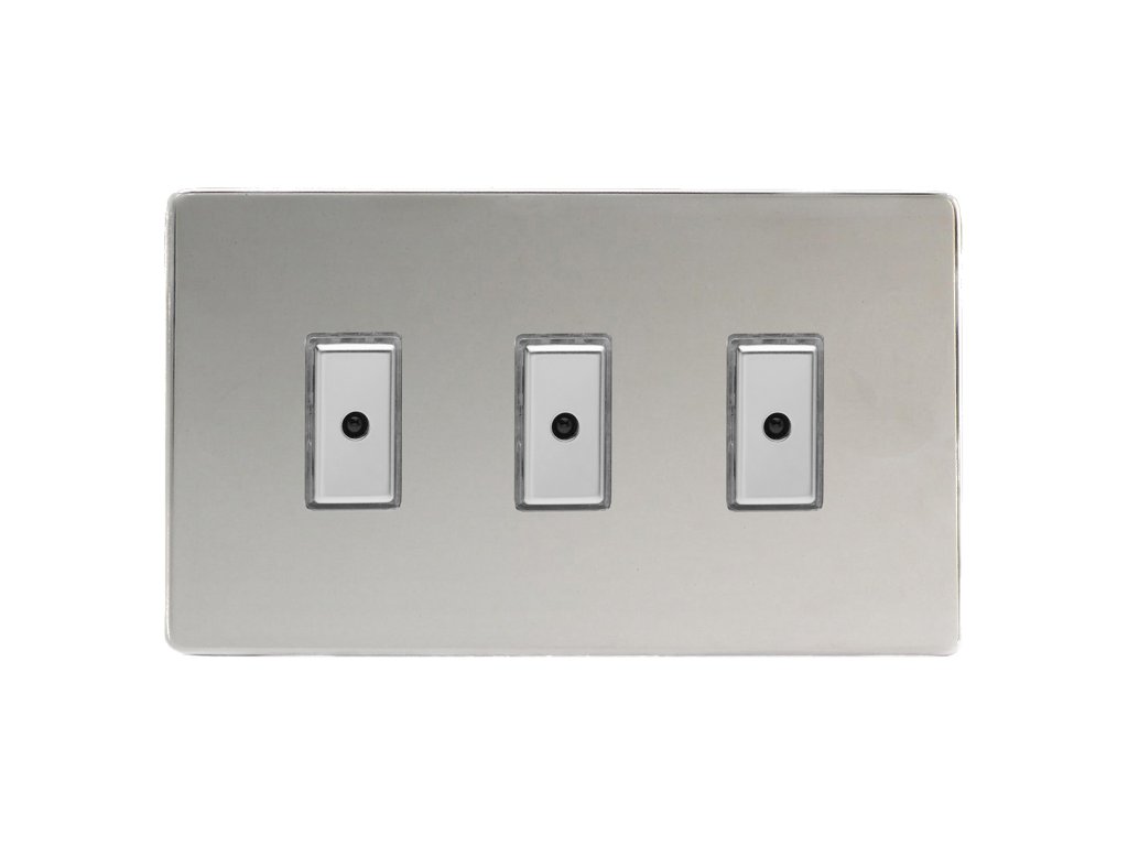 Tlaèítkový vypínaè IMPULSE - 3-modulový jednosmìrný (è.1) 0-100 W (max 10 LEDs) 1.1A 1-pólový LED s dálkovým V-Pro BEZROUBKOVÉ - letìný chrom / chromová tlaèítka