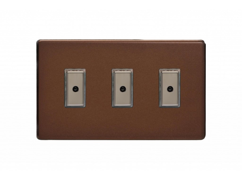 Tlaèítkový vypínaè IMPULSE - 3-modulový jednosmìrný (è.1) 0-100 W (max 10 LEDs) 1.1A 1-pólový LED s dálkovým V-Pro BEZROUBKOVÉ - moka / èerné (lesklé) iridium