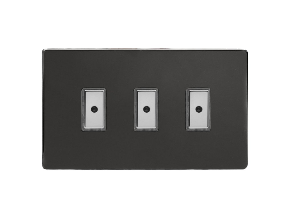 Tlačítkový vypínač IMPULSE - 3-modulový jednosměrný (č.1) 0-100 W (max 10 LEDs) 1.1A 1-pólový LED s dálkovým V-Pro BEZŠROUBKOVÉ - prémiová černá / chromová tlačítka