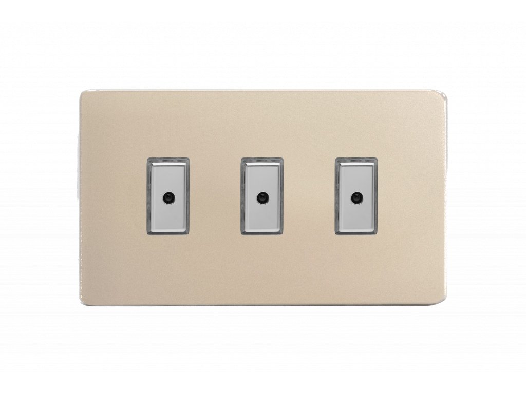 Tlačítkový vypínač IMPULSE - 3-modulový jednosměrný (č.1) 0-100 W (max 10 LEDs) 1.1A 1-pólový LED s dálkovým V-Pro BEZŠROUBKOVÉ - satén / chromová tlačítka