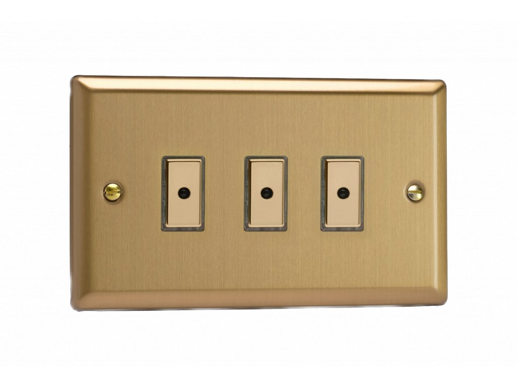 Tlačítkový vypínač IMPULSE - 3-modulový jednosměrný (č.1) 0-100 W (max 10 LEDs) 1.1A 1-pólový LED s dálkovým V-Pro KLASICKÉ - kartáčovaná mosaz / mosazná tlačítka