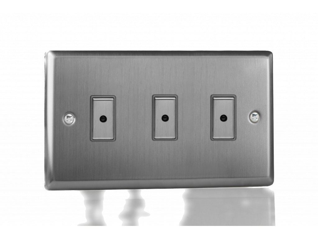 Tlačítkový vypínač IMPULSE - 3-modulový jednosměrný (č.1) 0-100 W (max 10 LEDs) 1.1A 1-pólový LED s dálkovým V-Pro KLASICKÉ - kartáčovaná ocel / ocelová tlačítka
