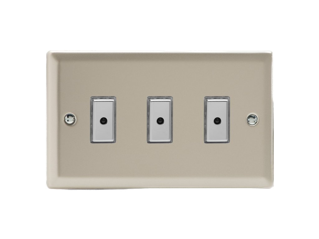 Tlaèítkový vypínaè IMPULSE - 3-modulový jednosmìrný (è.1) 0-100 W (max 10 LEDs) 1.1A 1-pólový LED s dálkovým V-Pro KLASICKÉ - satén / chromová tlaèítka