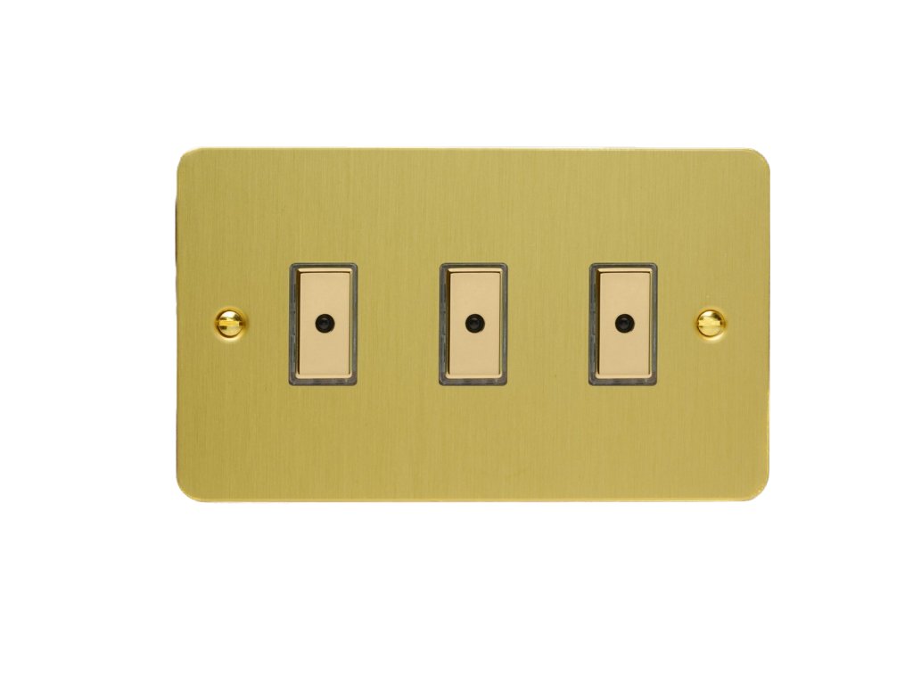 Tlaèítkový vypínaè IMPULSE - 3-modulový jednosmìrný (è.1) 0-100 W (max 10 LEDs) 1.1A 1-pólový LED s dálkovým V-Pro ULTRAPLOCHÉ - kartáèovaná mosaz / mosazná tlaèítka