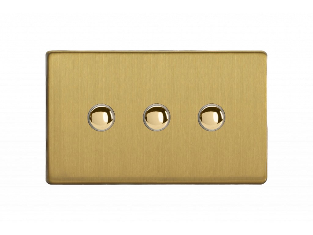 Tlaèítkový vypínaè IMPULSE - 3-modulový jednosmìrný (è.1) 6A 1-pólový momentový BEZROUBKOVÉ - kartáèovaná mosaz / mosazná tlaèítka