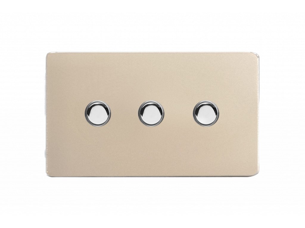 Tlačítkový vypínač IMPULSE - 3-modulový jednosměrný (č.1) 6A 1-pólový momentový BEZŠROUBKOVÉ - satén / chromová tlačítka