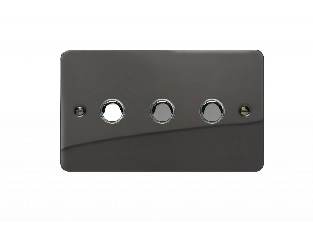 Tlačítkový vypínač IMPULSE - 3-modulový jednosměrný (č.1) 6A 1-pólový momentový ULTRAPLOCHÉ - černé (lesklé) iridium / černé (lesklé) iridium