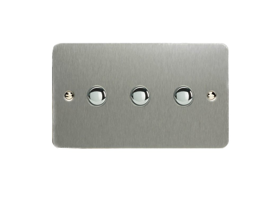 Tlaèítkový vypínaè IMPULSE - 3-modulový jednosmìrný (è.1) 6A 1-pólový momentový ULTRAPLOCHÉ - kartáèovaná ocel / chromová tlaèítka