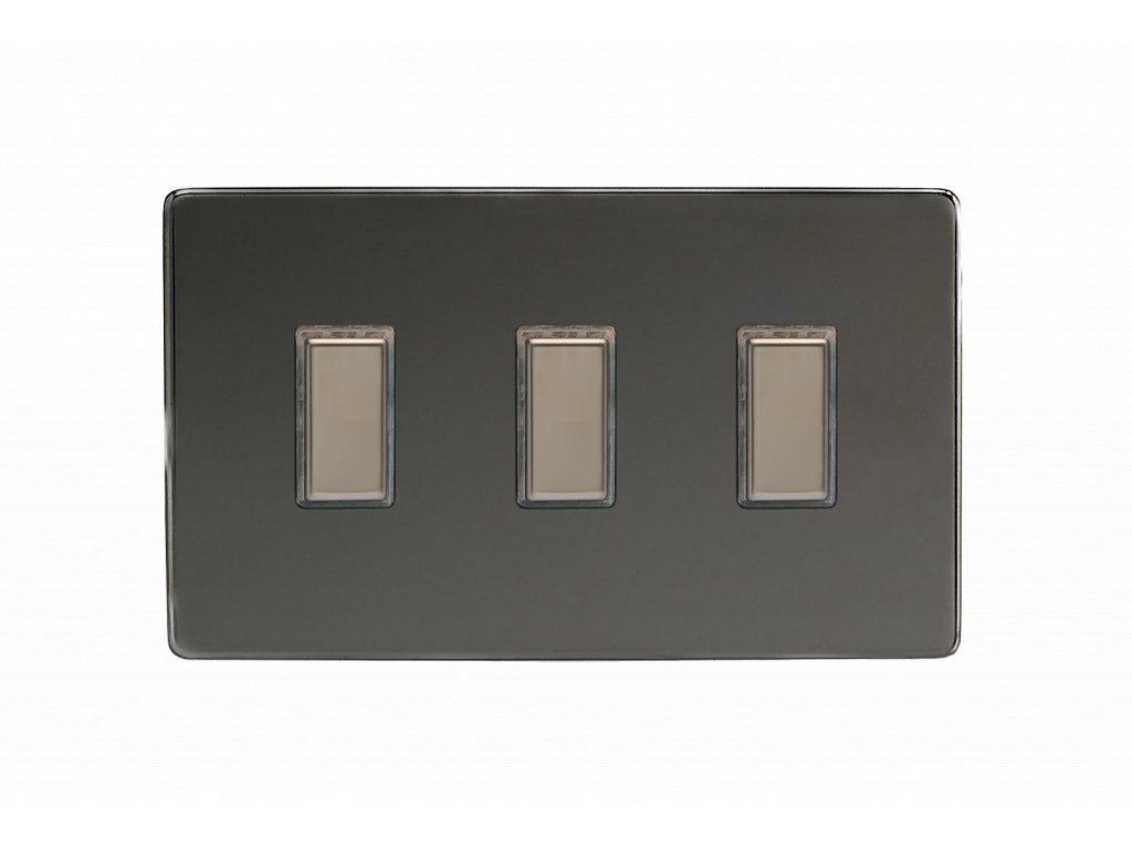 Tlaèítkový vypínaè IMPULSE - 3-modulový schodiový (è.6) 1-pólový BEZROUBKOVÉ - èerné (lesklé) iridium / èerné (lesklé) iridium