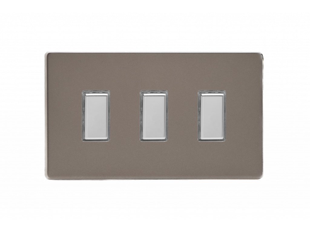 Tlaèítkový vypínaè IMPULSE - 3-modulový schodiový (è.6) 1-pólový BEZROUBKOVÉ - cínová / chromová tlaèítka