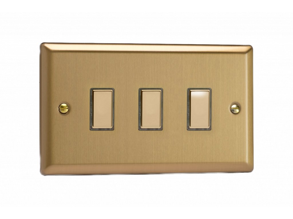 Tlaèítkový vypínaè IMPULSE - 3-modulový schodiový (è.6) 1-pólový KLASICKÉ - kartáèovaná mosaz / mosazná tlaèítka
