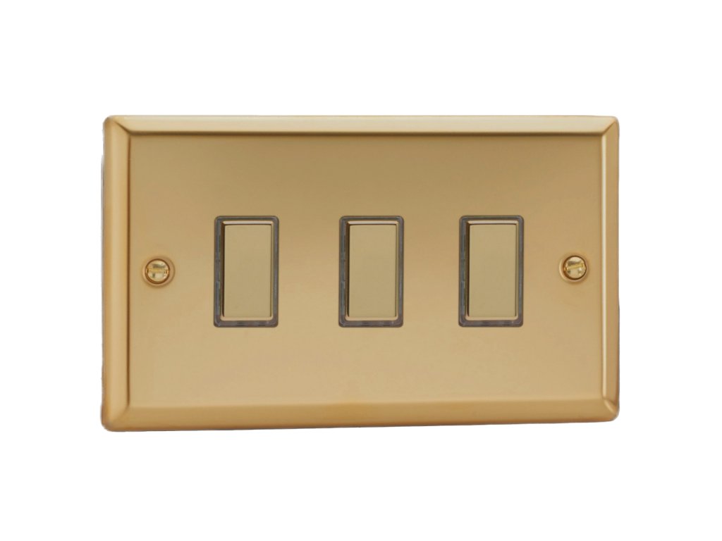 Tlaèítkový vypínaè IMPULSE - 3-modulový schodiový (è.6) 1-pólový KLASICKÉ - letìná mosaz / mosazná tlaèítka