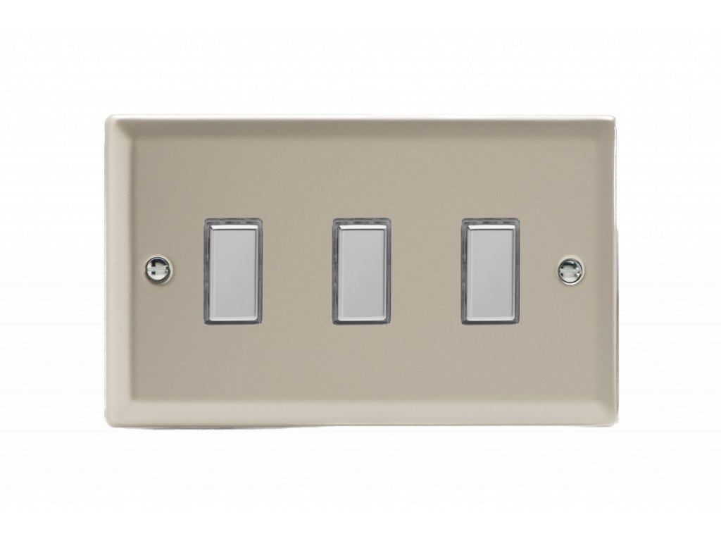 Tlaèítkový vypínaè IMPULSE - 3-modulový schodiový (è.6) 1-pólový KLASICKÉ - satén / chromová tlaèítka