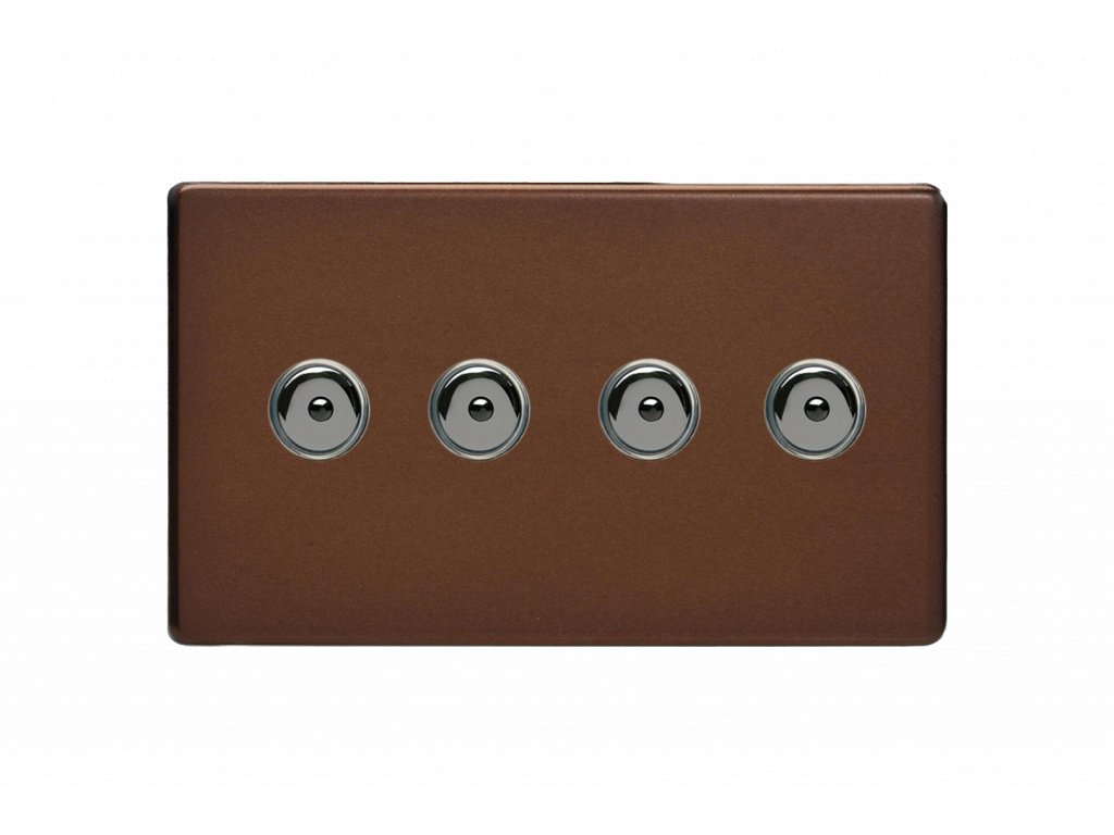 Tlačítkový vypínač IMPULSE - 4-modulový jednosměrný (č.1) 0-100 W (max 10 LEDs) 0.7A 1-pólový LED s dálkovým BEZŠROUBKOVÉ - moka / černé (lesklé) iridium