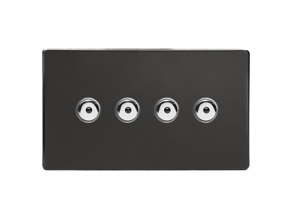 Tlaèítkový vypínaè IMPULSE - 4-modulový jednosmìrný (è.1) 0-100 W (max 10 LEDs) 0.7A 1-pólový LED s dálkovým BEZROUBKOVÉ - prémiová èerná / chromová tlaèítka