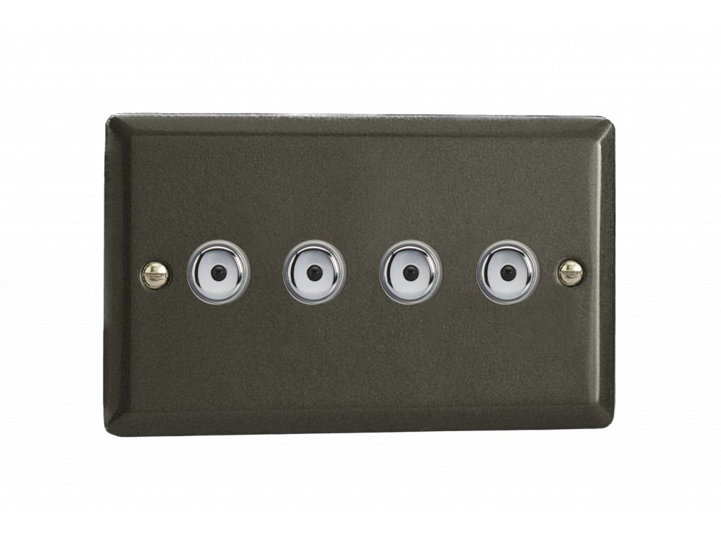 Tlaèítkový vypínaè IMPULSE - 4-modulový jednosmìrný (è.1) 0-100 W (max 10 LEDs) 0.7A 1-pólový LED s dálkovým KLASICKÉ - grafit 21 / chromová tlaèítka