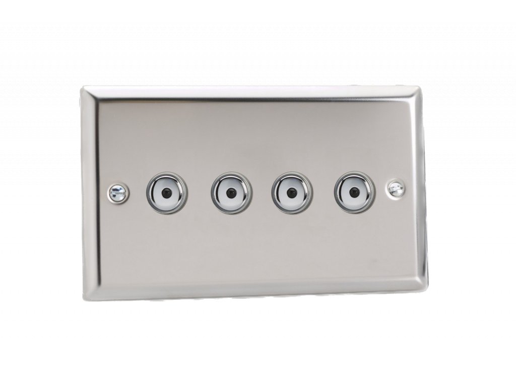 Tlaèítkový vypínaè IMPULSE - 4-modulový jednosmìrný (è.1) 0-100 W (max 10 LEDs) 0.7A 1-pólový LED s dálkovým KLASICKÉ - letìný chrom / chromová tlaèítka