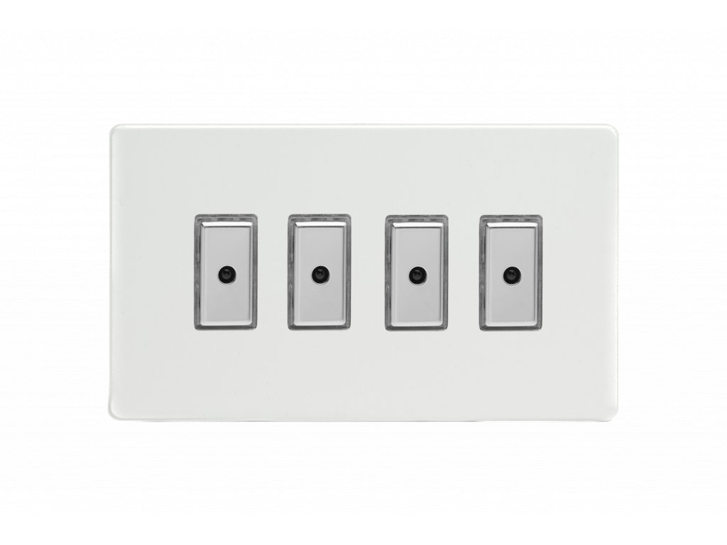 Tlaèítkový vypínaè IMPULSE - 4-modulový jednosmìrný (è.1) 0-100 W (max 10 LEDs) 0.7A 1-pólový LED s dálkovým V-Pro BEZROUBKOVÉ - prémiová bílá / chromová tlaèítka