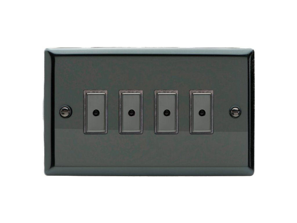 Tlaèítkový vypínaè IMPULSE - 4-modulový jednosmìrný (è.1) 0-100 W (max 10 LEDs) 0.7A 1-pólový LED s dálkovým V-Pro KLASICKÉ - èerné (lesklé) iridium / èerné (lesklé) iridium