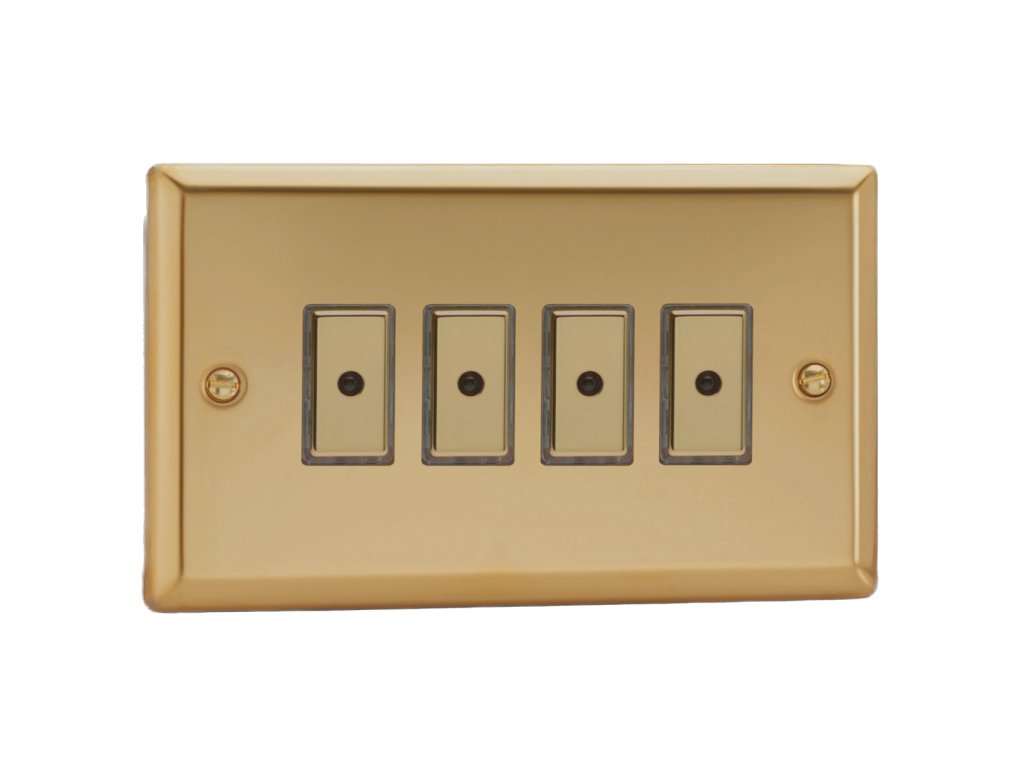Tlaèítkový vypínaè IMPULSE - 4-modulový jednosmìrný (è.1) 0-100 W (max 10 LEDs) 0.7A 1-pólový LED s dálkovým V-Pro KLASICKÉ - letìná mosaz / mosazná tlaèítka