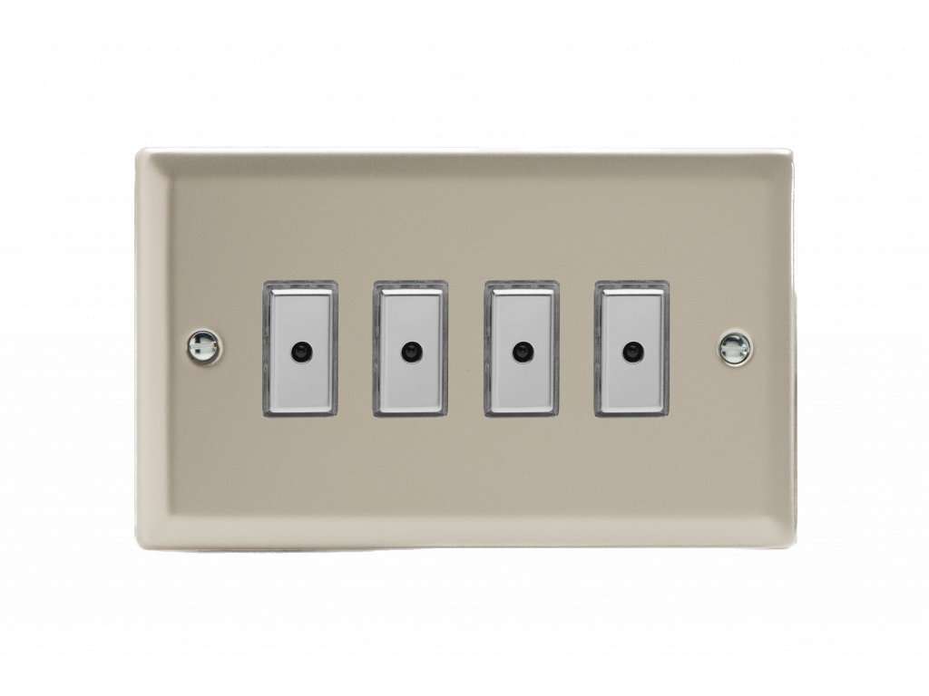 Tlaèítkový vypínaè IMPULSE - 4-modulový jednosmìrný (è.1) 0-100 W (max 10 LEDs) 0.7A 1-pólový LED s dálkovým V-Pro KLASICKÉ - satén / chromová tlaèítka
