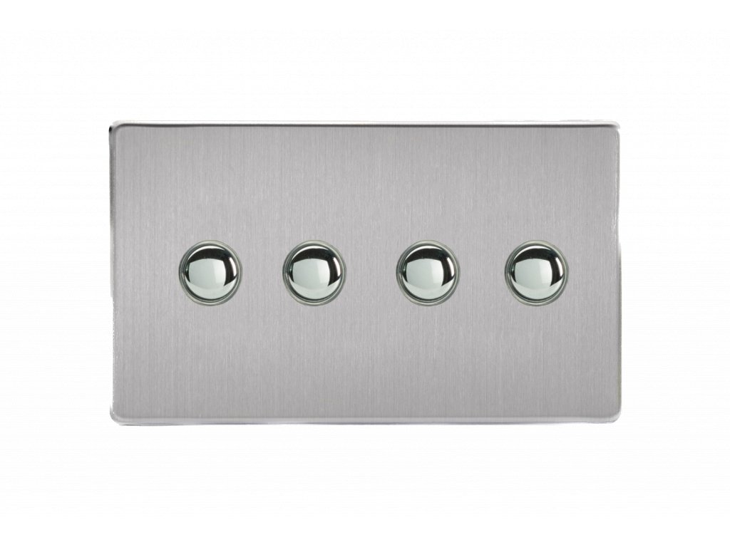 Tlaèítkový vypínaè IMPULSE - 4-modulový jednosmìrný (è.1) 6A 1-pólový momentový BEZROUBKOVÉ - kartáèovaná ocel / chromová tlaèítka