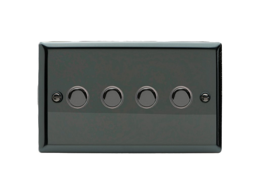 Tlaèítkový vypínaè IMPULSE - 4-modulový jednosmìrný (è.1) 6A 1-pólový momentový KLASICKÉ - èerné (lesklé) iridium / èerné (lesklé) iridium