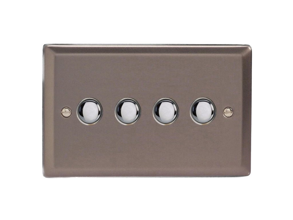 Tlaèítkový vypínaè IMPULSE - 4-modulový jednosmìrný (è.1) 6A 1-pólový momentový KLASICKÉ - cínová / chromová tlaèítka