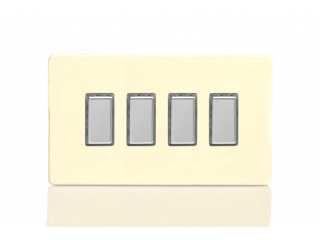Tlaèítkový vypínaè IMPULSE - 4-modulový schodiový (è.6) 1-pólový BEZROUBKOVÉ - bílá èokoláda / chromová tlaèítka