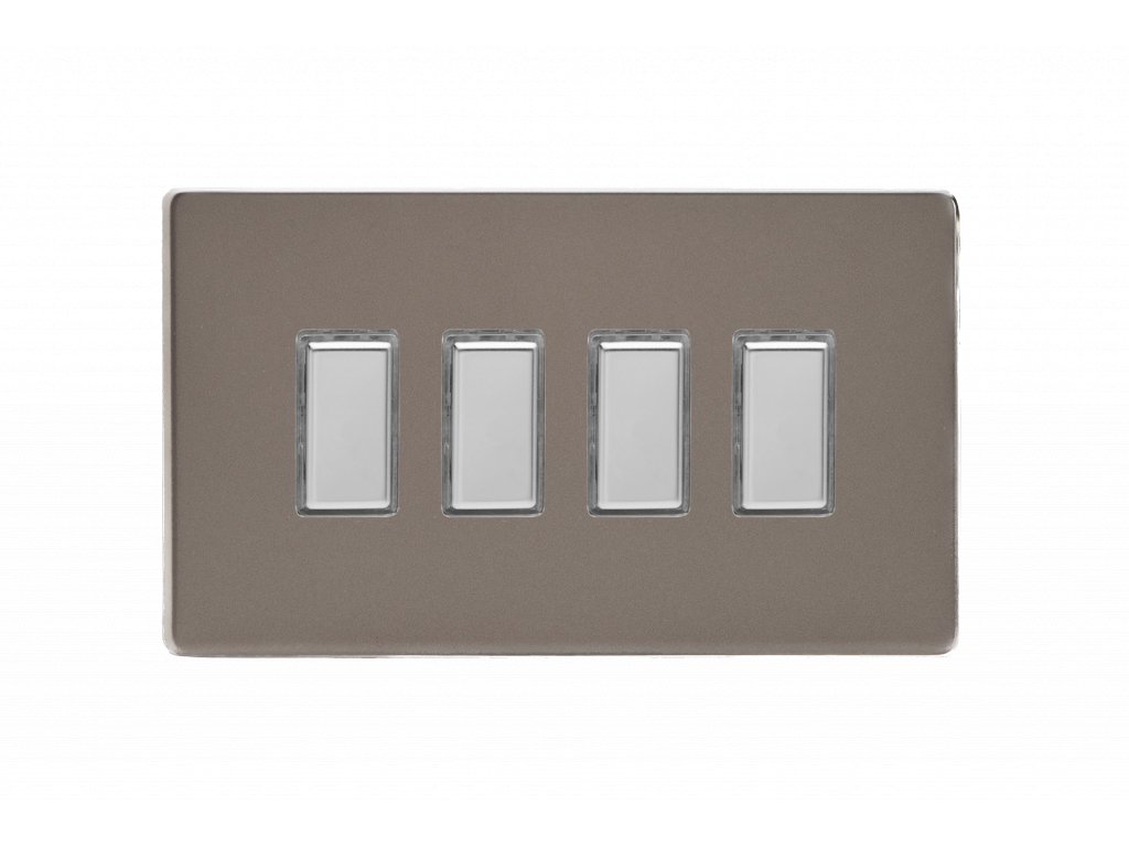 Tlaèítkový vypínaè IMPULSE - 4-modulový schodiový (è.6) 1-pólový BEZROUBKOVÉ - cínová / chromová tlaèítka