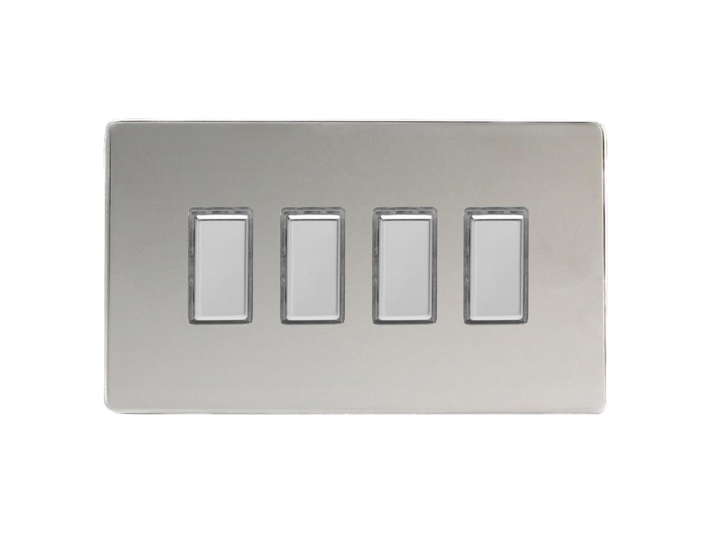 Tlaèítkový vypínaè IMPULSE - 4-modulový schodiový (è.6) 1-pólový BEZROUBKOVÉ - letìný chrom / chromová tlaèítka