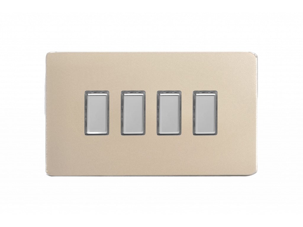 Tlačítkový vypínač IMPULSE - 4-modulový schodišťový (č.6) 1-pólový BEZŠROUBKOVÉ - satén / chromová tlačítka