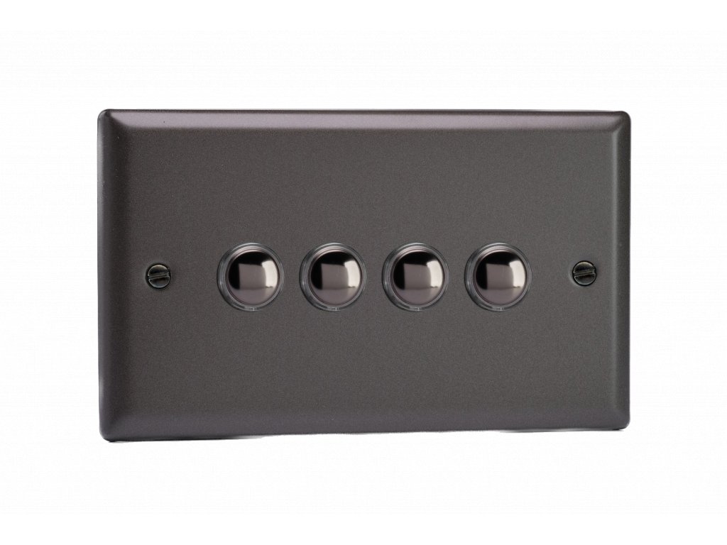 Tlačítkový vypínač IMPULSE - 4-modulový schodišťový (č.6) 1-pólový KLASICKÉ - grafit 21 / chromová tlačítka